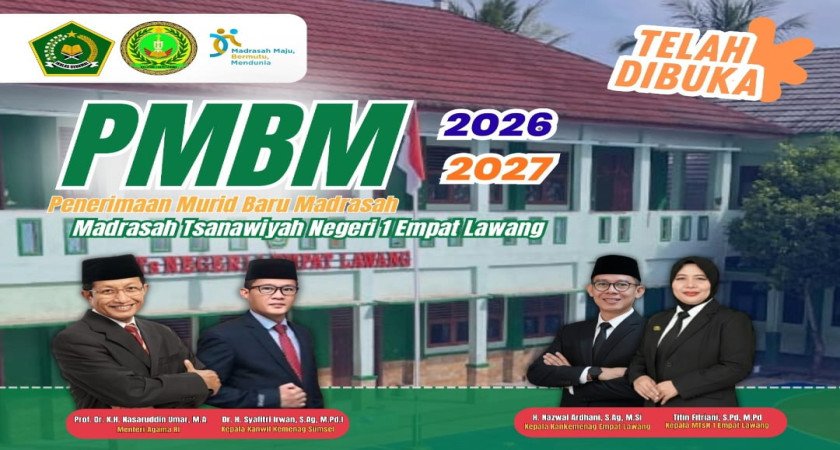INFO PMBM MTs Negeri 1 Empat Lawang TP. 2026/2027 Assalamu’alaikum Wr. Wb. Halo #BestieMadrasah MTsN 1 Empat Lawang resmi membuka Penerimaan